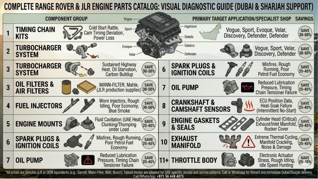 Ready to order? Call +971 56 448 4075 or WhatsApp wa.me/971564484075 — All Range Rover engine parts, 20-50% below dealer, same-day delivery Dubai & Sharjah.