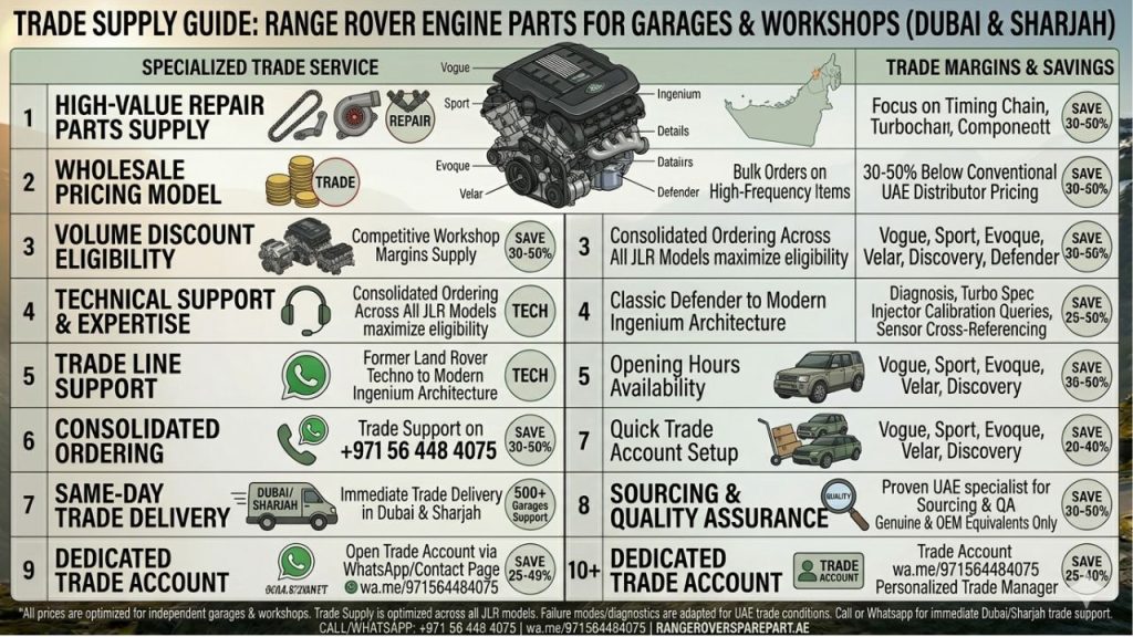 Workshop trade enquiries: +971 56 448 4075 | wa.me/971564484075 — Open an account and save 30-50% on all Range Rover engine parts today.